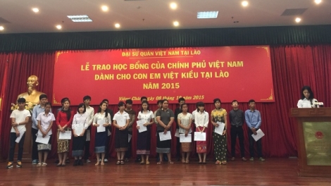 (VOV5)- Chiều 8/10, tại thủ đô Viêng chăn-Đại sứ quán Việt Nam tại Lào đã tổ chức Lễ trao Quyết định học bổng của Chính phủ Việt Nam dành cho con em Việt kiều tại Lào năm 2015.