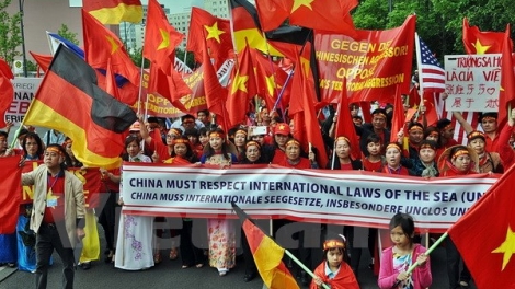 Chiều ngày 14/6 tại quảng trường Alexanderplatz ở thủ đô Berlin, Cộng hòa liên bang Đức, hơn 3.000 bà con Việt kiều đang sinh sống tại Đức đã tổ chức cuộc míttinh, biểu tình lớn phản đối các hoạt động xây đảo nhân tạo của Trung Quốc tại khu vực quần đảo Trường Sa của Việt Nam.