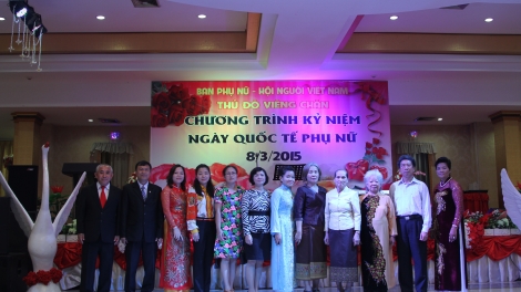 (VOV5) - Tối 10/3, Ban phụ nữ-Hội người Việt Nam thủ đô Viêng Chăn (Vientiane)-Lào đã tổ chức Lễ kỷ niệm ngày quốc tế phụ nữ 8/3. Ông Nguyễn Duy Trung, quyền Chủ tịch Tổng hội người Việt nam tại Lào, đại diện Đại sứ quán VN tại Lào, các cơ quan bên cạnh Đại sứ quán, các doanh nghiệp, ngân hàng VN tại Lào cùng đông đảo bà con Kiều bào đã tham dự.