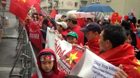 (VOV5)- Sáng ngày 18.5.2014 cộng đồng người Việt từ hai thành phố Linz và Viên đã tham gia biểu tình hòa bình trước Đại sứ quán Trung Quốc tại thành phố Viên, phản đối việc Trung Quốc đặt giàn khoan Hải Dương-981 trái phép tại thềm lục địa và vùng đặc quyền kinh tế của Việt Nam.