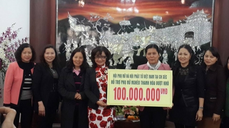 (VOV5) - Chiều 24/01, Hội liên Hiệp phụ nữ Việt Nam đã tiếp nhận số tiền một trăm triệu đồng do chị em phụ nữ thuộc Hội phụ nữ và Hội Phật tử Việt Nam tại Cộng hòa Séc hỗ trợ người nghèo trong nước vay vốn sản xuất, ổn định đời sống.