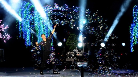 (VOV5) - Tối 17/02, nghệ sĩ Fang Yang người Canada gốc Việt Nam, nổi tiếng thế giới với 18 kỷ lục Guinness về tạo bong bóng khổng lồ đã có những màn trình diễn ấn tượng, độc đáo tại thành phố Đà Nẵng mừng Xuân Quý Tỵ 2013.