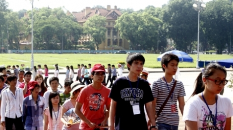 (VOV5)- Tiếp tục hành trình Trại hè Việt Nam 2012, ngày 14/7, các đại biểu thanh niên, sinh viên kiều bào vào lăng viếng Chủ tịch Hồ Chí Minh, thăm nơi ở và làm việc của Người.