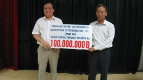 (VOV5) – Chiều 8/5, tại trụ sở Ủy ban Nhà nước về người Việt Nam ở nước ngoài, Bộ Ngoại giao, diễn ra lễ tiếp nhận 100 triệu đồng của cá nhân ông Hoàng Văn Vinh, Chủ tịch cộng đồng người Việt Nam tại tỉnh Sverdlovsk, Liên bang Nga dành tặng quân dân Trường Sa.
