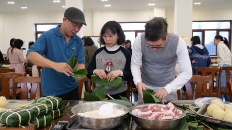 Người Việt ở Bắc Kinh gói nỗi nhớ nhà và giữ hồn Tết Việt trong chiếc bánh chưng xanh
