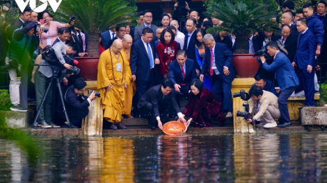 (VOV5) - Ngày 19/1, trong khuôn khổ chương trình Xuân Quê hương 2025, Chủ tịch nước và Phu nhân cùng 100 kiều bào đã tham gia hoạt động phóng sinh cá chép tại khu ao cá Bác Hồ ở Phủ Chủ tịch.