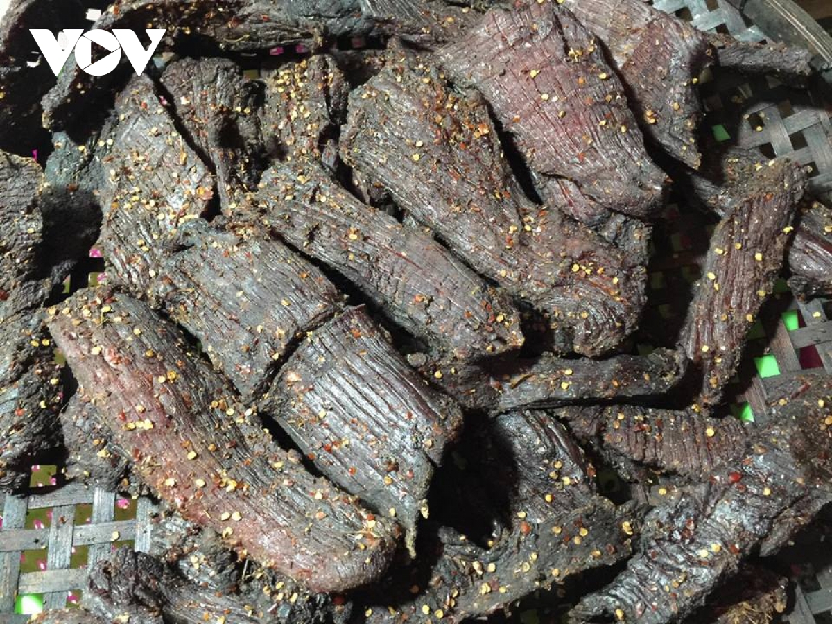 Bà con bản Lầu duy trì nghề làm các sản phẩm thịt trâu, bò khô phục vụ du khách. Ảnh: VOV |