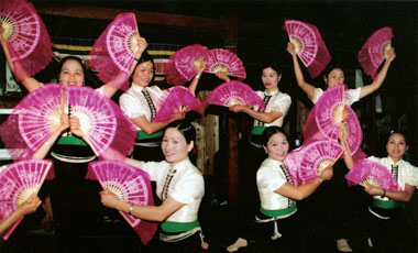 | Múa xòe quạt của dân tộc Thái trên nhà sàn - Ảnh: Trọng Thanh/baoanhdatmui.vn |
