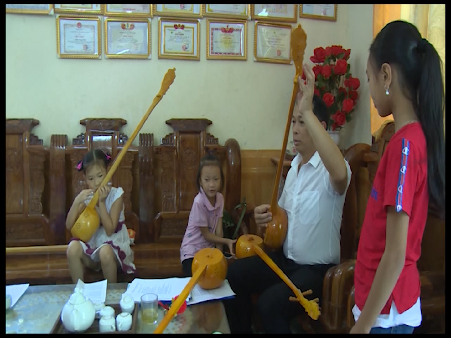 Nhiều em nhỏ tham gia các lớp học đàn tính do Nghệ nhân ưu tú Đinh Văn Thức truyền dạy