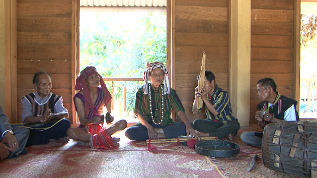 Những nghệ nhân người Pako ở tỉnh Quảng Trị hát dân ca và chơi nhạc cụ tại nhà sinh hoạt cộng đồng. ( Nguồn internet)