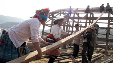 | Người Mông ở bản Hoa Dì Hồ, xã Bản Hon, huyện Tam Đường (Lai Châu) được chính quyền hỗ trợ dựng nhà trên vùng đất mới - Ảnh: Báo Tin tức |