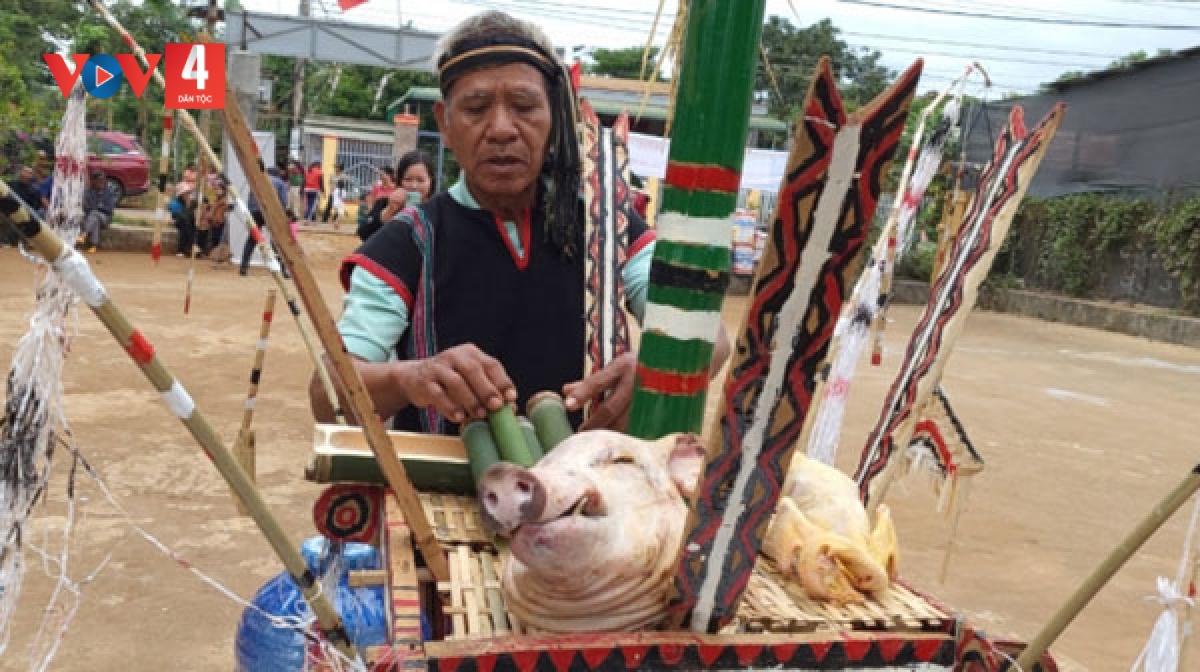 Mọi người cùng tập trung nghe già làng dọc lời khấn, chúng con cầu mong sang năm đưa lúa đi gieo, lúa giống ra ngoài cũng mọc, lúa ở trong cũng lên, đẹp bời bời như cỏ tranh ngoài rừng, xanh như mía trong vườn người người đi qua muốn xin làm giống; cầu mong cuối năm mưa thuận gió hòa, người người khỏe mạnh, nhà nhà yên vui, con cháu học hành nên người.