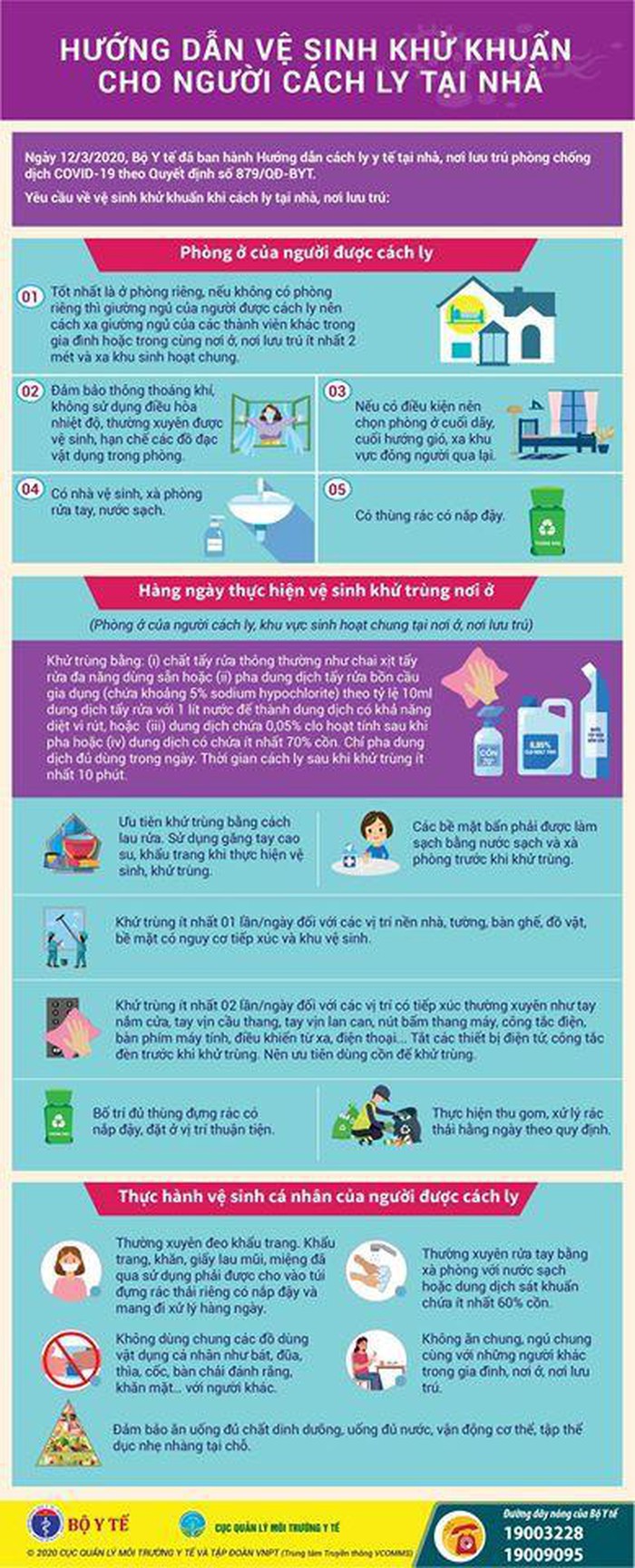(VOV5) -Bộ Y tế khuyến cáo khử khuẩn ít nhất 1 lần/ngày với vị trí nền nhà, tường, bàn ghế, đồ vật, bề mặt có nguy cơ tiếp xúc.