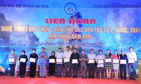 (VOV5) - Liên hoan nghệ thuật hát Then, đàn Tính toàn quốc lần thứ V năm 2015 bế mạc ngày 26/9 tại tỉnh Tuyên Quang.