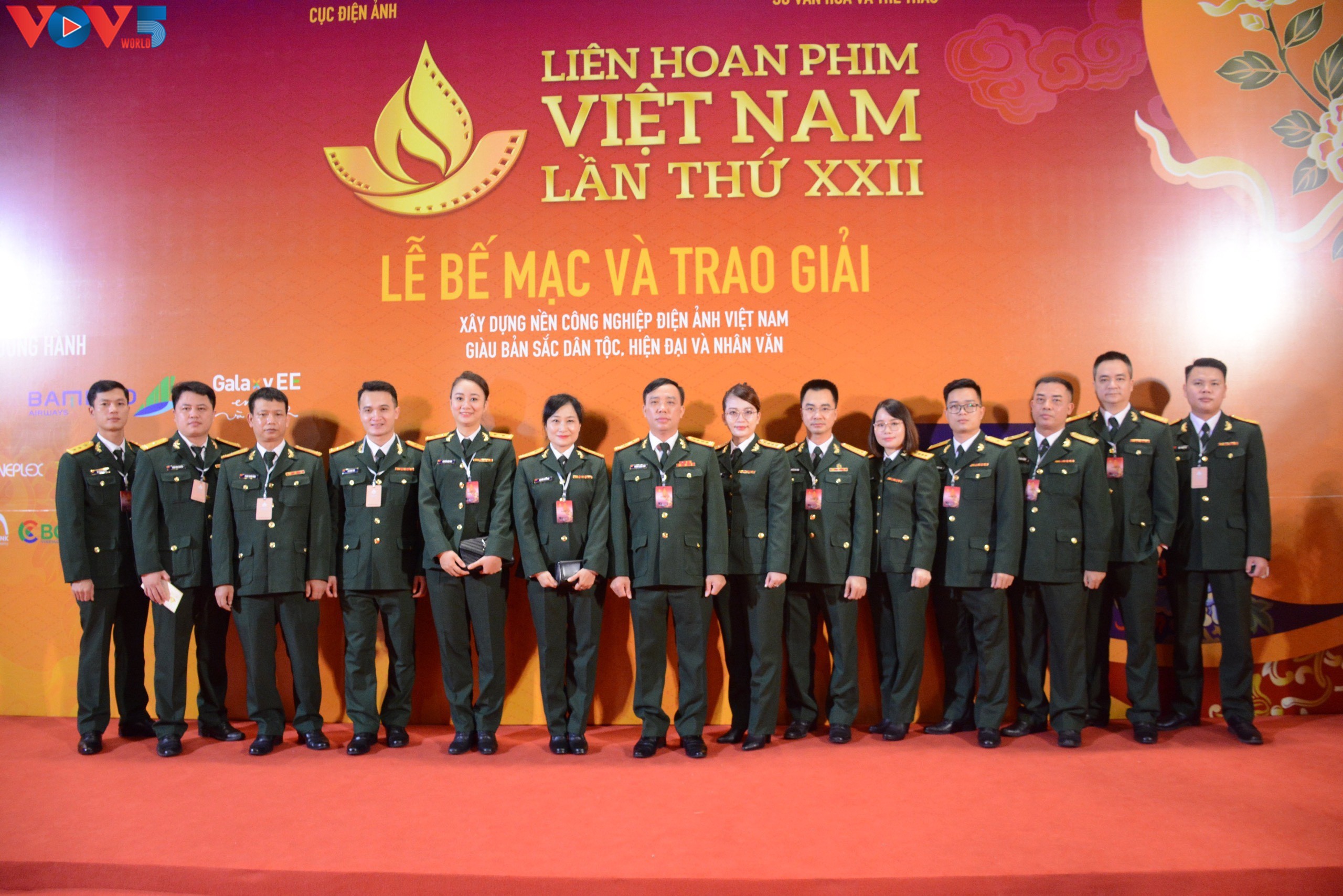 Các nghệ sĩ Điện ảnh Quân đội tham dự Lễ bế mạc và trao giải Liên hoan phim Việt Nam lần thứ 22. |