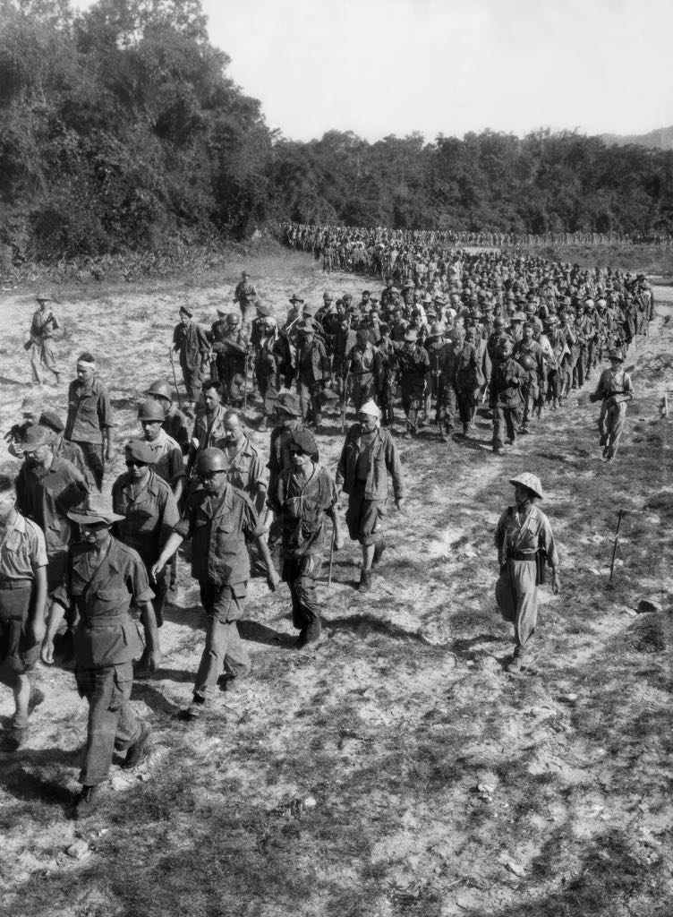 Dẫn giải tù binh Pháp ở Điện Biên Phủ về hậu cứ. - Ảnh: Gia đình NSNA Triệu Đại cung cấp |