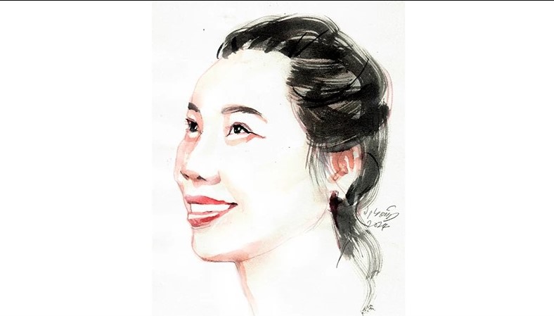 Ký họa chân dung nhà thơ Thy Nguyên của họa sĩ Đỗ Hoàng Tường. Ảnh: Báo Nhân dân |