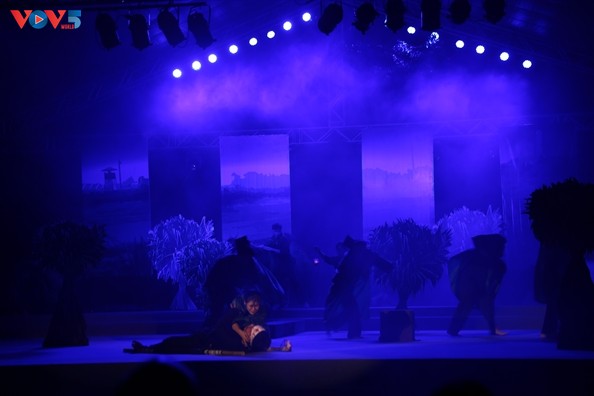 Một phân đoạn trong vở diễn Cánh đồng rực lửa của sân khấu kịch Quốc Thảo. |