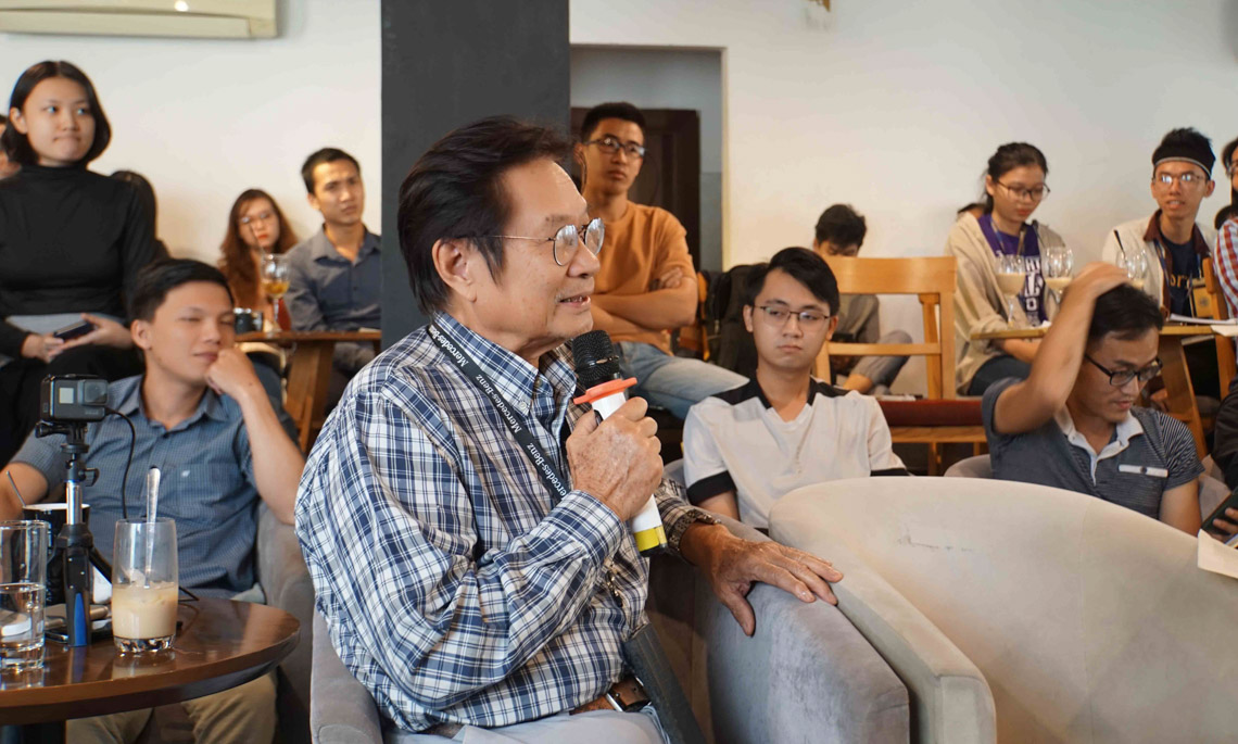 Nhạc sĩ Dương Thụ trong một buổi nói chuyện tại Cà phê thứ bảy - Ảnh: doanhnhanplus |