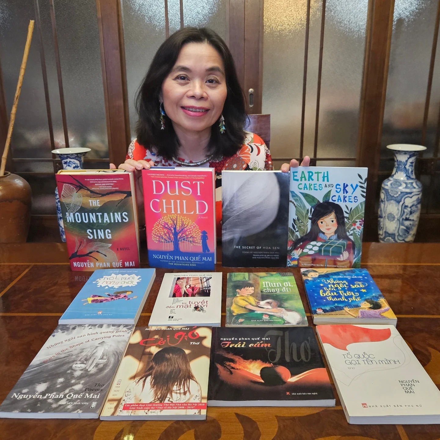 Nhà văn, dịch giả Nguyễn Phan Quế Mai, tác giả của 12 cuốn sách tiếng Việt và tiếng Anh, như chị từng trả lời báo chí “viết để bảo tồn tính Việt trong tiếng Anh”. Trong bốn cuốn tiếng Anh, tiểu thuyết The Mountains Sing (tạm dịch Những ngọn núi ngân vang) và DustChild (tạm dịch Bụi đời) của chị, đã được dịch ra nhiều ngôn ngữ khác nhau và bán chạy trên toàn cầu, tuy chưa phát hành bản tiếng Việt. Do điều kiện công tác, Nguyễn Phan Quế Mai xê dịch qua nhiều nước, và hiện giờ vẫn đi về giữa Việt Nam và Kyrgykystan.