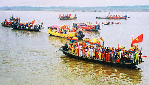 | Rước nước trên sông Hồng trong lễ hội Tiên Dung - Chử Đồng Tử - Ảnh: Báo Bắc Ninh |