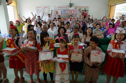 | Một buổi giao lưu của chương trình Chuyến tàu kể chuyện tại câu lạc bộ Con thuyền nhỏ tại trường tiểu học Nguyễn Du (Long Xuyên, An Giang) đầu năm 2013 |
