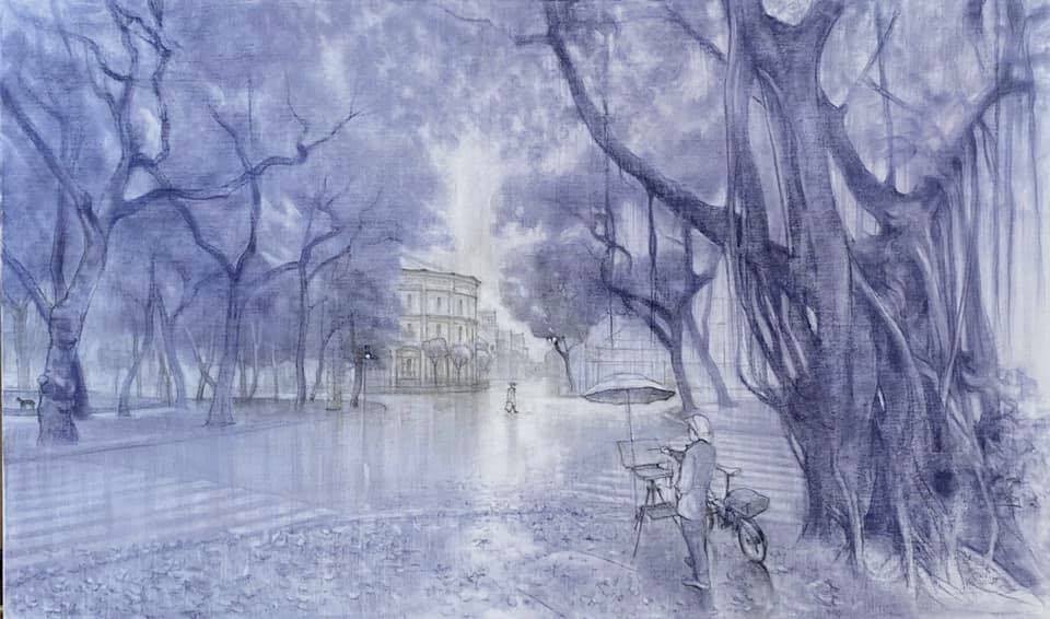 Bốt Hàng Đậu, Hà Nội trong tranh của họa sĩ Trịnh Lữ. |