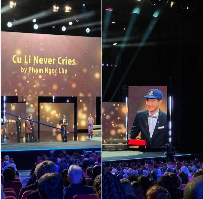 "Giải thưởng này quan trọng cho chúng tôi, vì nó giúp lan toả cách nhìn khác về một quốc gia nhỏ bé, và bởi đó, nó góp phần làm cho cách hiểu này không bị biến mất." - Phát biểu của đạo diễn Phạm Ngọc Lân tại Lễ trao giải LHP Berlin/ Ảnh: fb Cu li không bao giờ khóc |