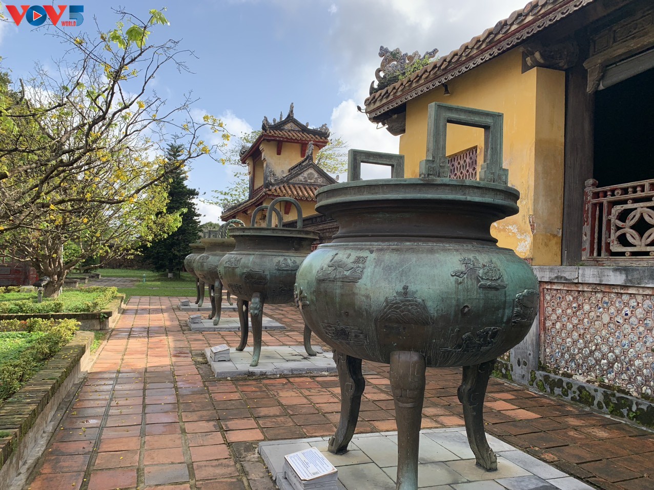 Cửu đỉnh được đặt tại sân Thế Tổ Miếu đã gần 200 năm qua. |