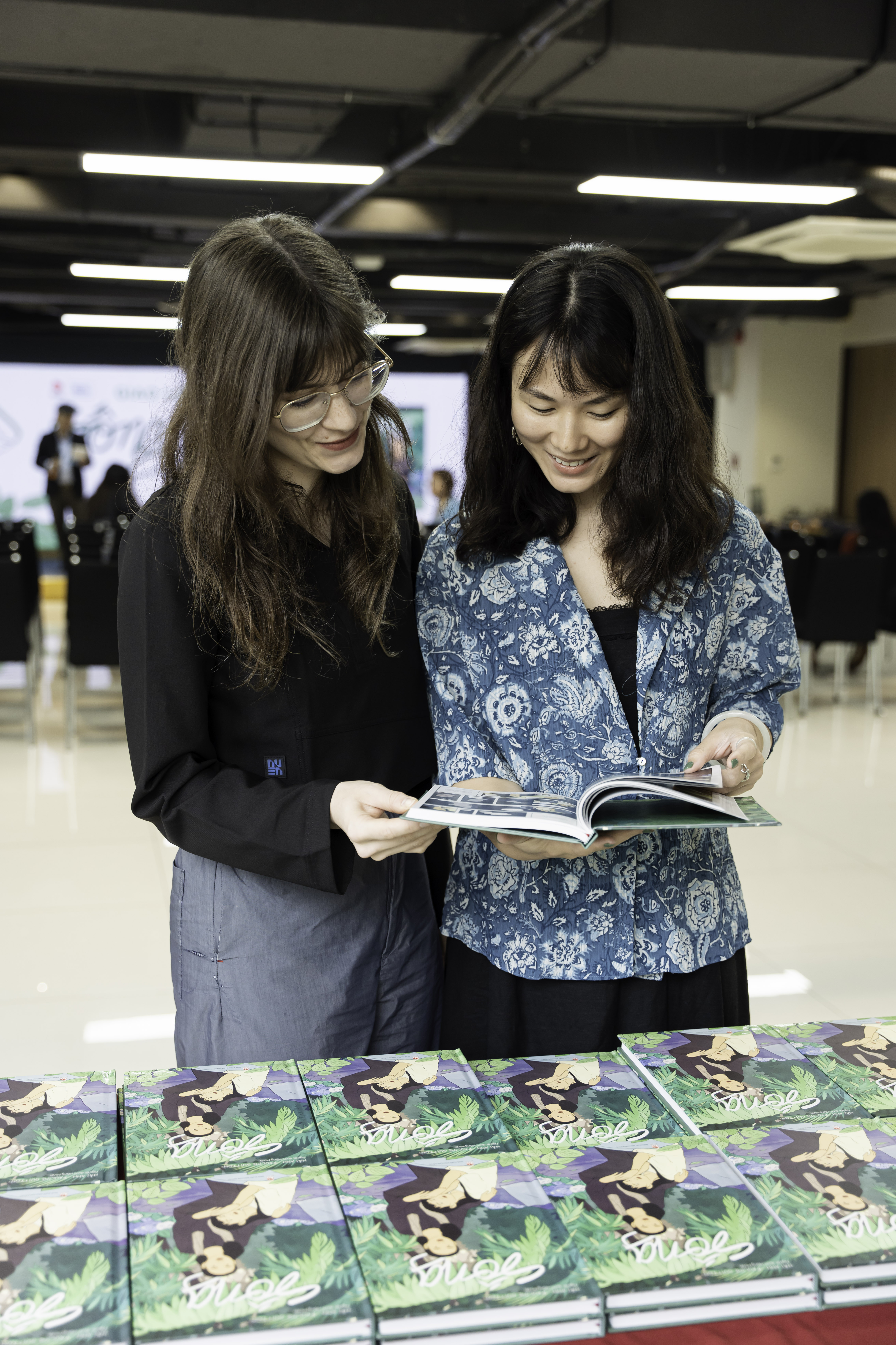 Hai nữ tác giả tại hội trường buổi ra mắt sách. - Ảnh: KĐ
