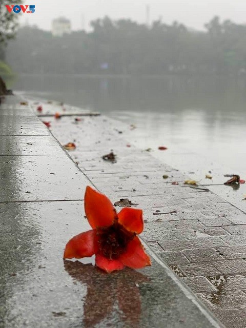 Hoa gạo trong mưa phùn tháng ba - Ảnh: Hoài My |