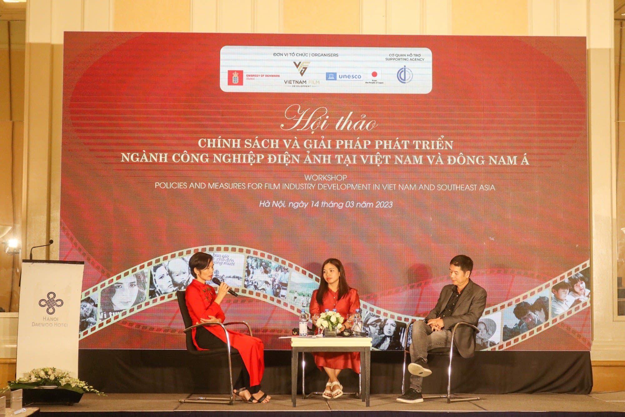 (từ trái qua): nhà sản xuất phim Trần Thị Bích Ngọc, tiến sĩ Đào Lê Nam tại Hội thảo Chính sách và giải pháp phát triển ngành công nghiệp điện ảnh tại Việt nam và Đông Nam Á. - Ảnh: Fp UNESCO |
