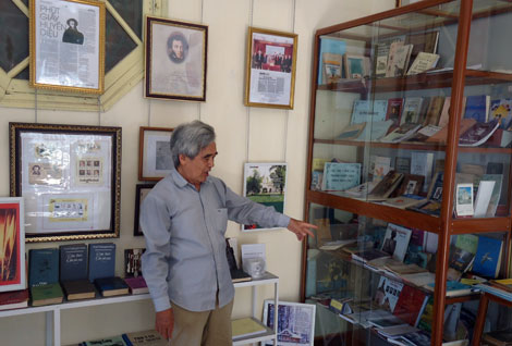 | Dịch giả Thúy Toàn và một góc Nhà lưu niệm văn học Nga ở làng Phù Lưu, thị xã Từ Sơn, Bắc Ninh. - Ảnh: vnca.cand.com.vn |