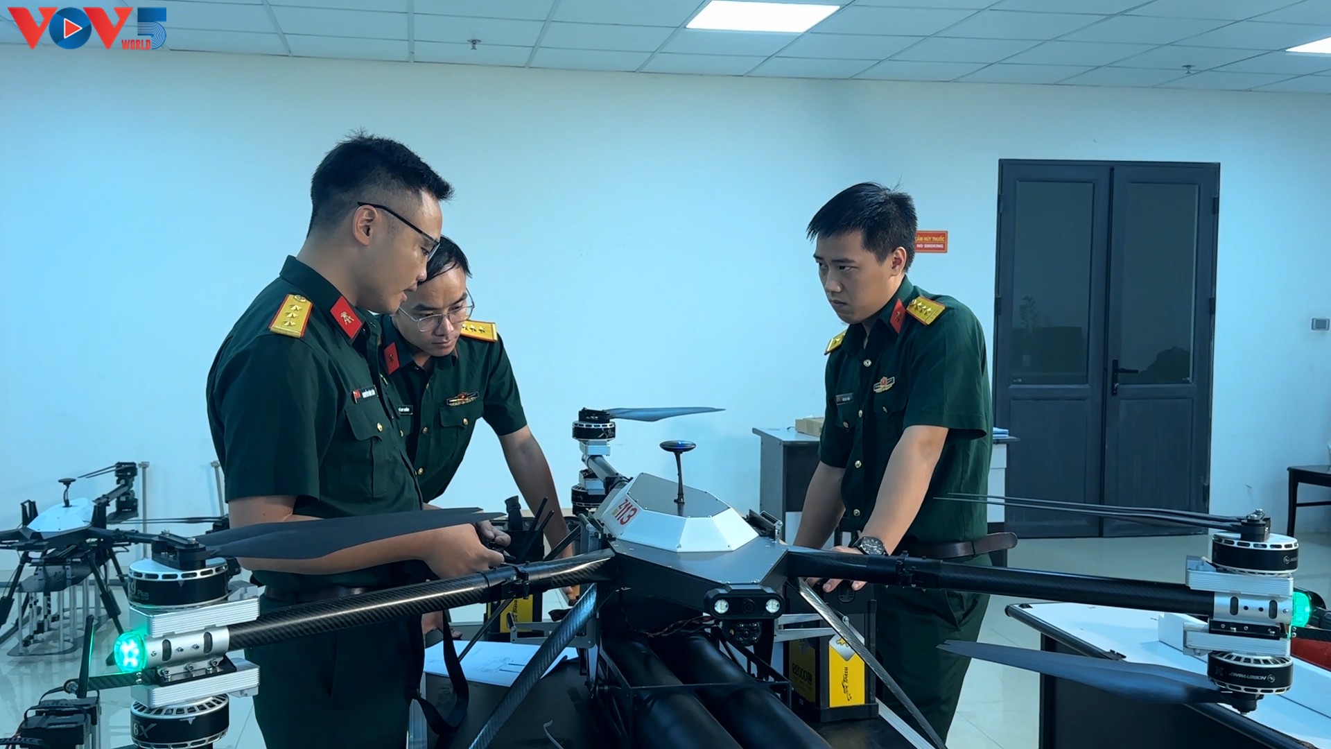 Các nghệ sĩ Điện ảnh Quân đội tác nghiệp trong phim khoa học khoa học quân sự. |