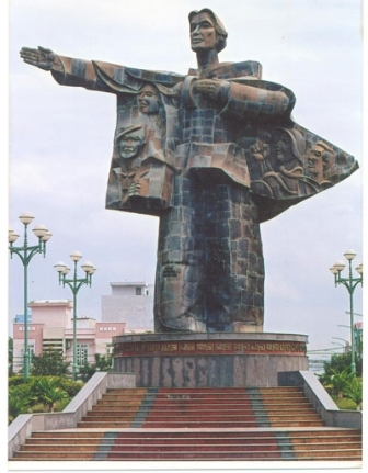 Tôi không hỏi ông về vườn tượng tuyệt đẹp ông làm ở thành phố Đà Lạt, cũng không hỏi về những tác phẩm điêu khắc hoàn hảo cả về không gian mà ông đã làm ở Huế, ở thành phố Hồ Chí Minh, ở làng hoa Gò Vấp, trên đường Hồ Chí Minh, ở Toà thánh, mà mang theo nỗi thắc mắc riêng về những tác phẩm tượng đài đầu tiên của ông sau giải phóng.