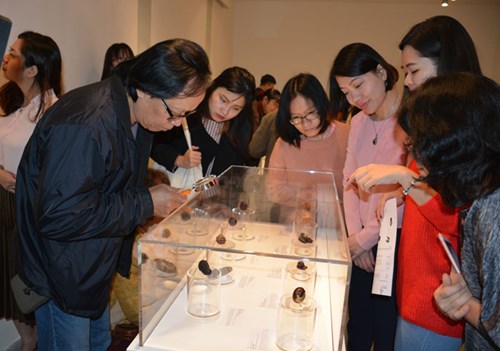 Ngoài các tác phẩm trưng bày trong tủ kính theo từng chủ đề, Ban tổ chức còn có dụng ý trưng bày một số tác phẩm bên ngoài để người xem có thể tận tay chạm vào và quan sát kỹ lưỡng, tiếp cận với vẻ đẹp tinh túy của netsuke. Bởi, mỗi khi chạm và nhìn netsuke sẽ tạo nên một sự cộng hưởng đặc biệt khiến chúng trở nên sống động và phong phú.