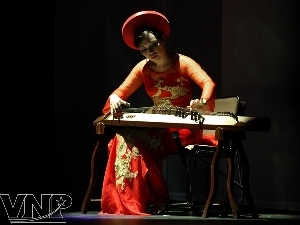 | Nghệ sỹ ưu tú Phạm Trà My biểu diễn với cây đàn tranh (Ảnh: Báo Ảnh Việt Nam) |
