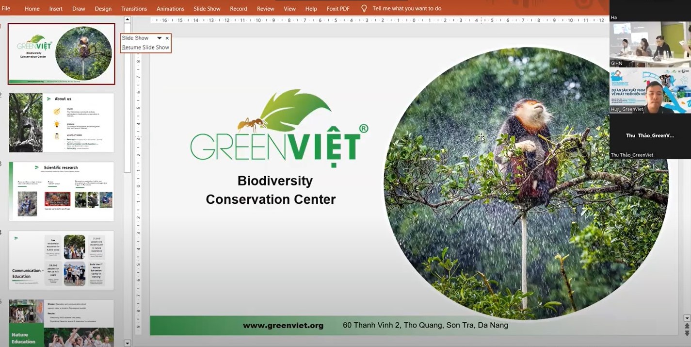 Chia sẻ của đại diện Trung tâm Green Việt trên màn hình tại họp báo. |