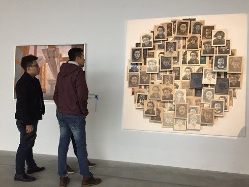 Tác phẩm “Hình dung” của nghệ sĩ trẻ Đoàn Thị Ngọc Anh, 26 tuổi ở Hà Nội đã thể hiện rất rõ điều này. Qua chất liệu đồ họa in kẽm, mỗi gương mặt người thể hiện một cảm xúc khác nhau. Sau đó tác giả sắp đặt những bức tranh vẽ gương mặt người ấy theo vòng tròn thể hiện cho vòng quay của thời gian.