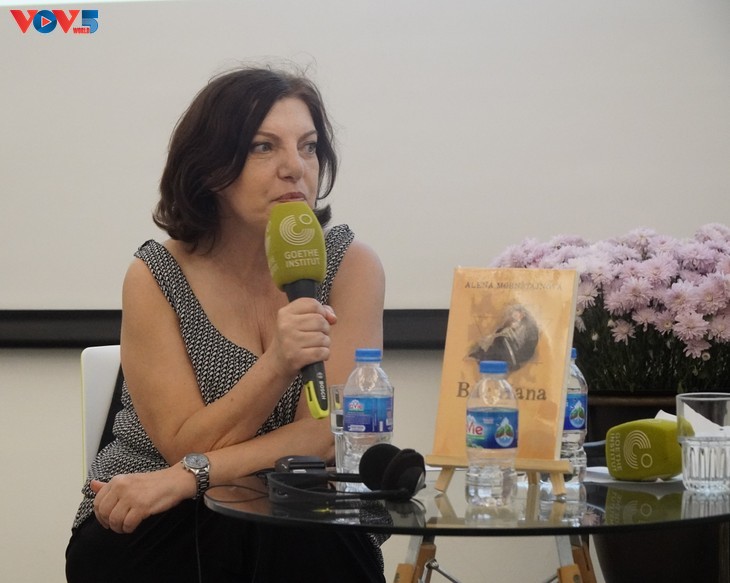 Nhà văn Alena Mornštajnová tại buổi giao lưu với bạn đọc ở Hà Nội tháng 5/2024. |
