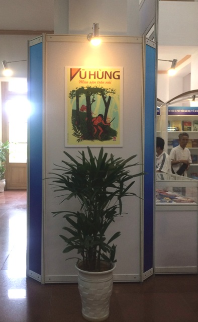 | Sảnh tầng 1 của Thư viên Quốc gia Việt Nam trưng bày những pano bìa sách của nhà văn Vũ Hùng do NXB Kim Đồng thực hiện |
