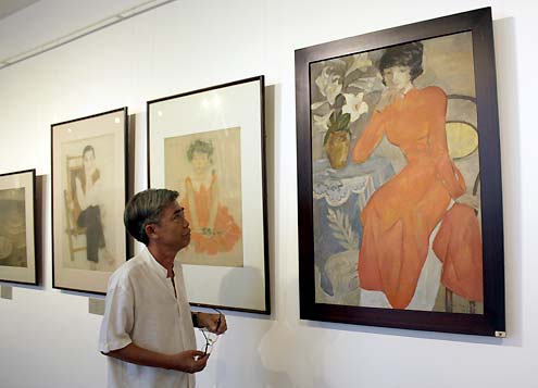 | Họa sĩ Hứa Thanh Bình trong khu trưng bày mới của Bảo tàng Mỹ thuật TP HCM. Ảnh: Thoại Hà/vnexpress.net |