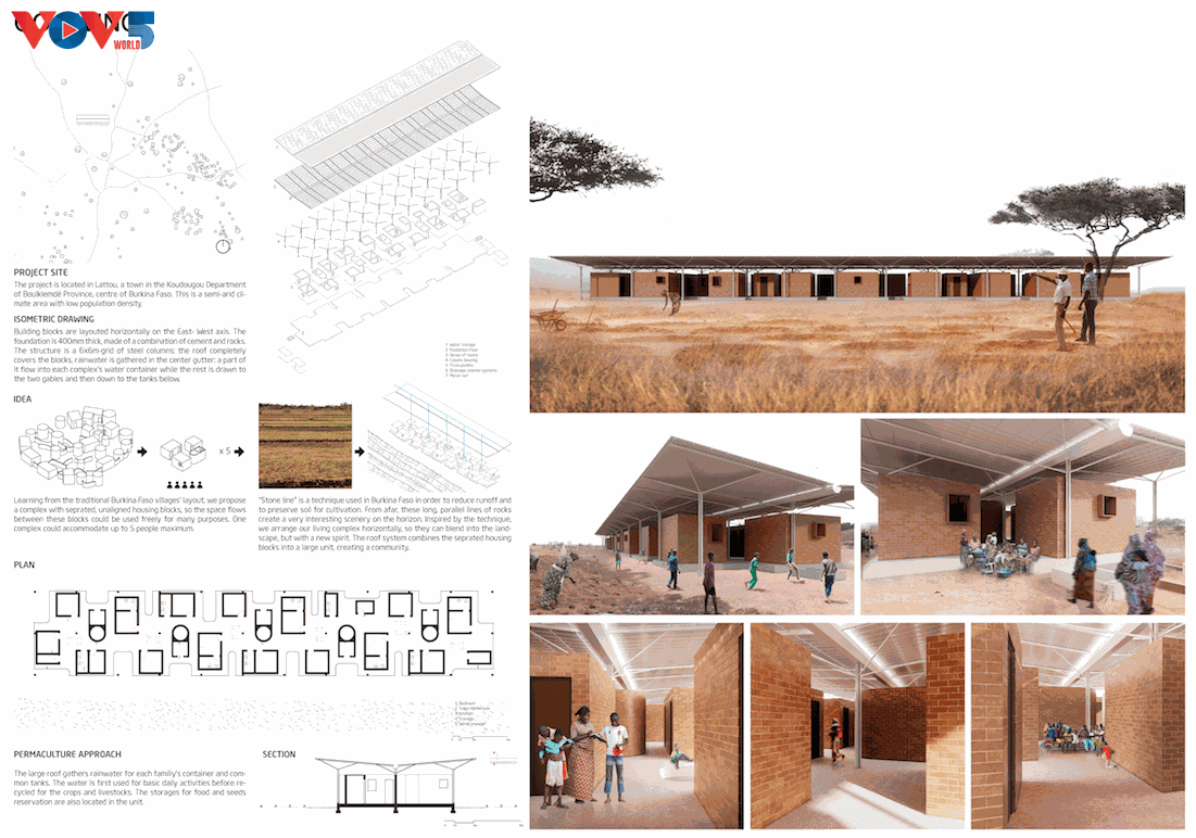 Với đồ án “Co-Living” dành cho người dân bản địa ở Burkina Faso – một quốc gia ở Tây Phi, thuộc vành đai chống sự xâm lấn của hoang mạc Sahara, hai kiến trúc sư trẻ của Việt Nam đã đóng góp ý tưởng thiết kế về một mô hình nhà ở giá rẻ, dễ làm cho người dân nơi đây.