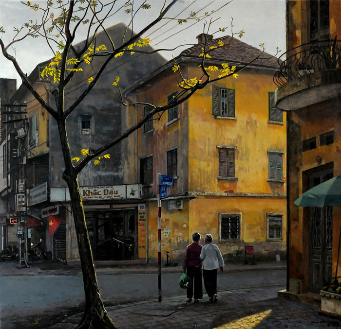 Phố của Chương thuyết phục người xem bằng cách vẽ chi tiết, bố cục có nhịp điệu, âm hưởng, với những tương phản nhẹ nhàng kịch tính theo hướng lãng mạn. Hiện thực trong tranh phố của Chương chủ yếu là hiện thực về cách vẽ. Mà cũng không phải là “tả thực”, mà đúng với nghĩa “representational”: “trinh bày lại” một hiện thực đã qua chọn lọc và diễn dịch trong tâm lý họa sỹ. Nó không còn là phố Hà Nội như ta thấy hàng ngày hiện nay. Nó không phản ảnh “hiện thực” bây giờ của Hà Nội, mà cho ta thấy hình hài của một cuộc sống Hà Nội khác, vẫn đấy mà không còn nữa. Cho nên tranh phố của Chương thực ra không hiện thực về chủ đề, và chủ yếu là hiện thực về phong cách. Có thể có người thấy Chương vẫn chưa “tới nơi” về tả chất, như tranh cực thực của Âu Mỹ, nhưng thế là may mắn, vì nhờ vậy mà phố của Chương không vô cảm.