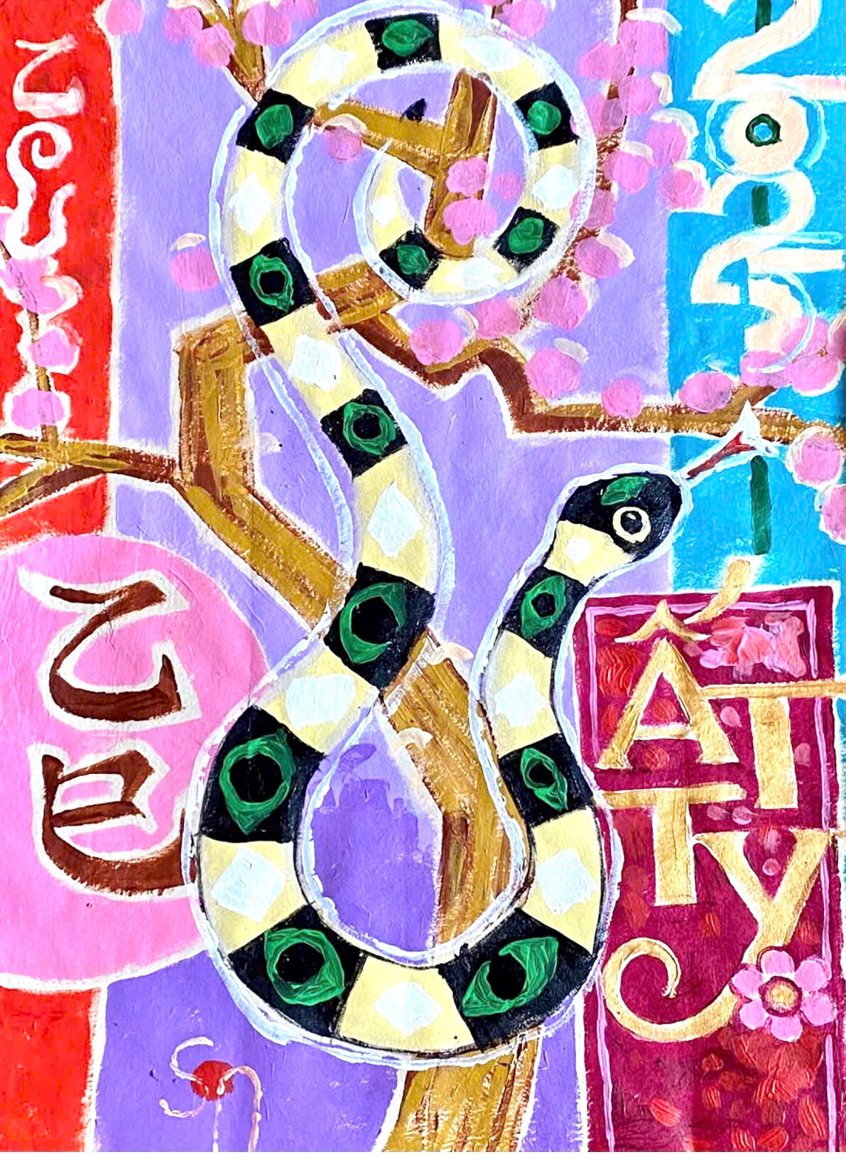 Còn chị Ngô Tố Hoa (Hà Nội) dừng bước khá lâu trước bộ tranh. Màu sắc và cách trình bày của họa sĩ về linh vật Rắn dường như đã tiếp thêm cho chị sự tự tin, năng lượng tích cực để đón chào năm mới: "Đứng trước bức tranh thì cảm xúc của tôi có sự tươi mới, một năng lượng tràn đầy. Từ thể hiện màu sắc cũng như kết hợp với tượng hình chữ Hán Nôm trong từng nét vẽ, giúp tôi cảm thấy ấm áp, tin tưởng vào năm Ất Tỵ khởi sắc, tràn đầy năng lượng để thành công."