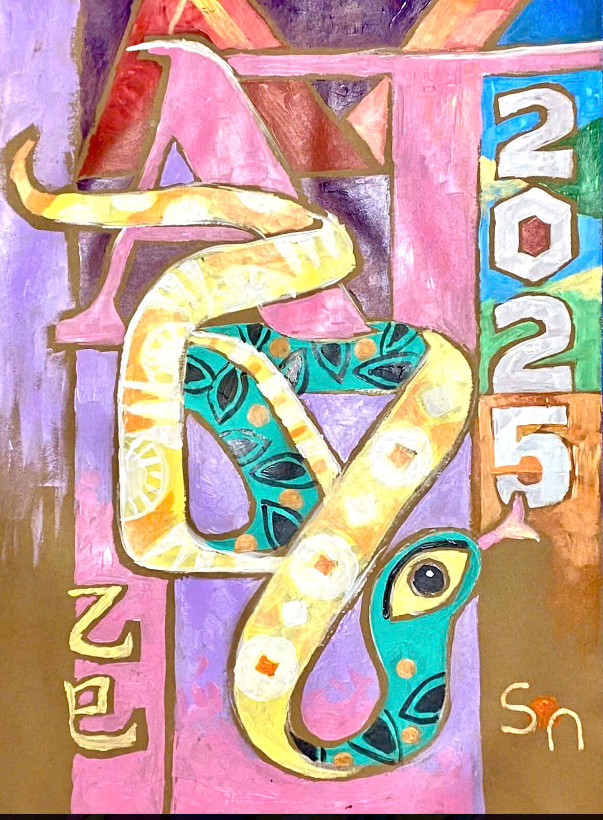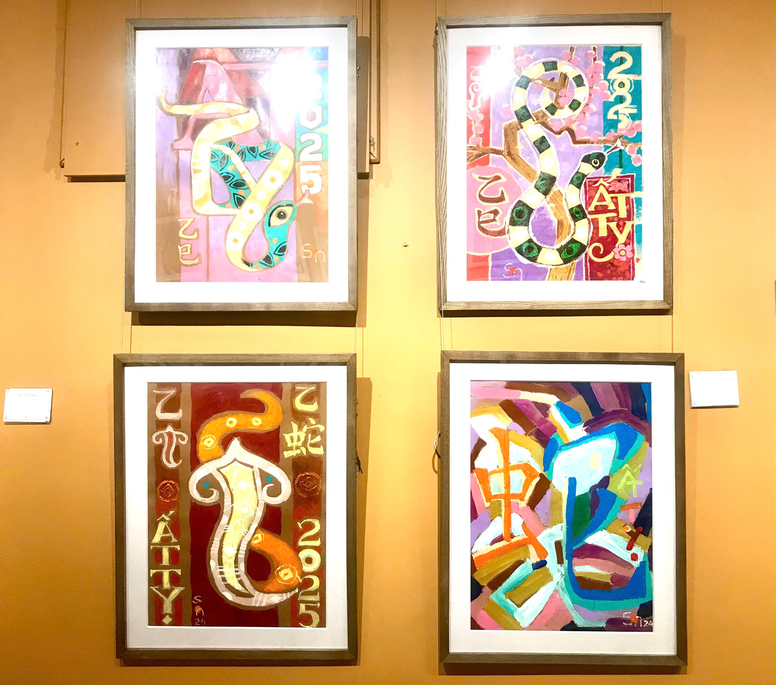 Bốn bức tranh là bốn cung bậc cảm xúc thể hiện chiều sâu mỹ cảm khi người cầm cọ chuyên tâm thể hiện dáng vóc và sắc màu của chú Rắn- linh vật năm 2025 để gửi gắm những dự cảm tốt lành trong năm mới. Điểm nổi bật trong các bức tranh chính là họa sĩ Nguyễn Doãn Sơn đã nương theo nét mềm mại, uyển chuyển của bộ chữ Nôm để tạo hình những thế Rắn một cách độc đáo, sinh động: