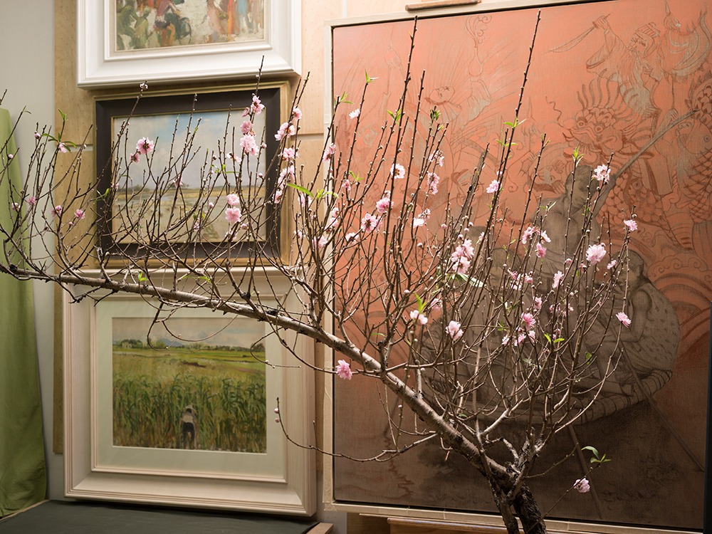 Không khí xuân trong căn phòng của gia đình họa sĩ Trịnh Lữ tại 108 Quán Thánh, Hà Nội. - Ảnh: FBNV |