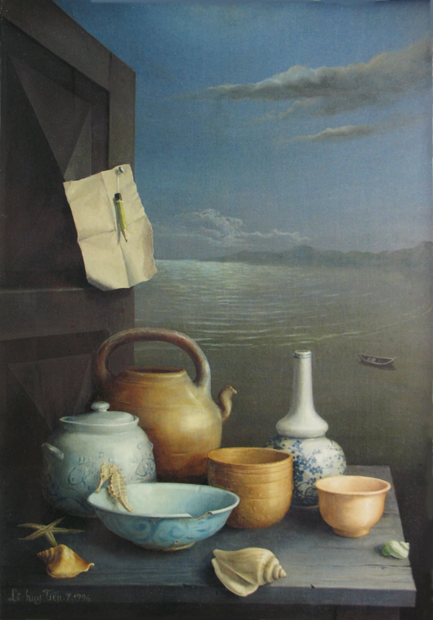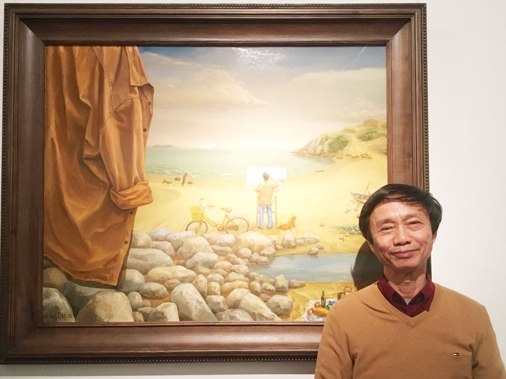 Họa sĩ Lê Huy Tiếp bên tác phẩm Du thuyền - Ảnh: Báo Thanh niên |