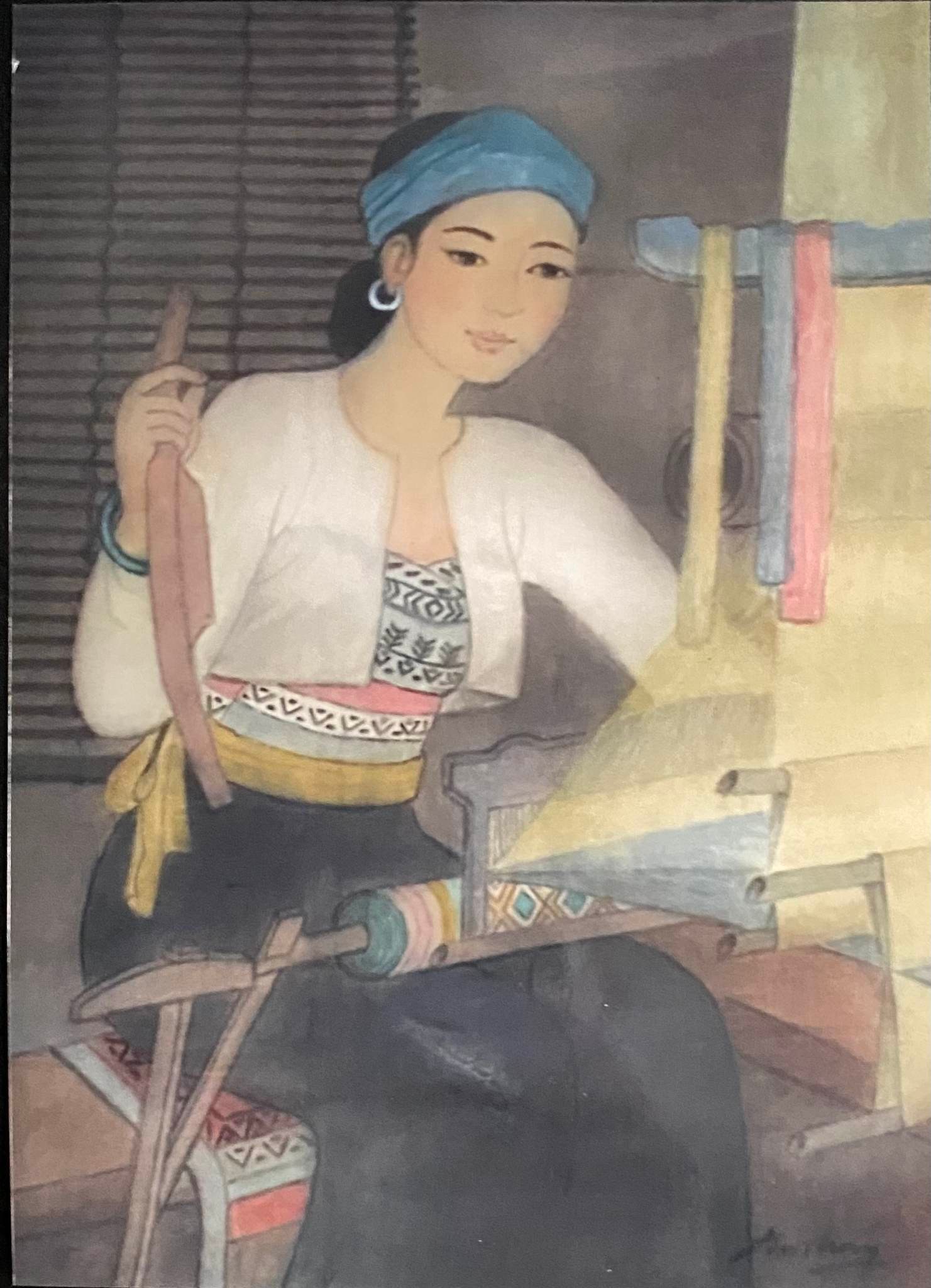 Cô gái dệt vải- Tranh Nguyễn Minh Mỹ |