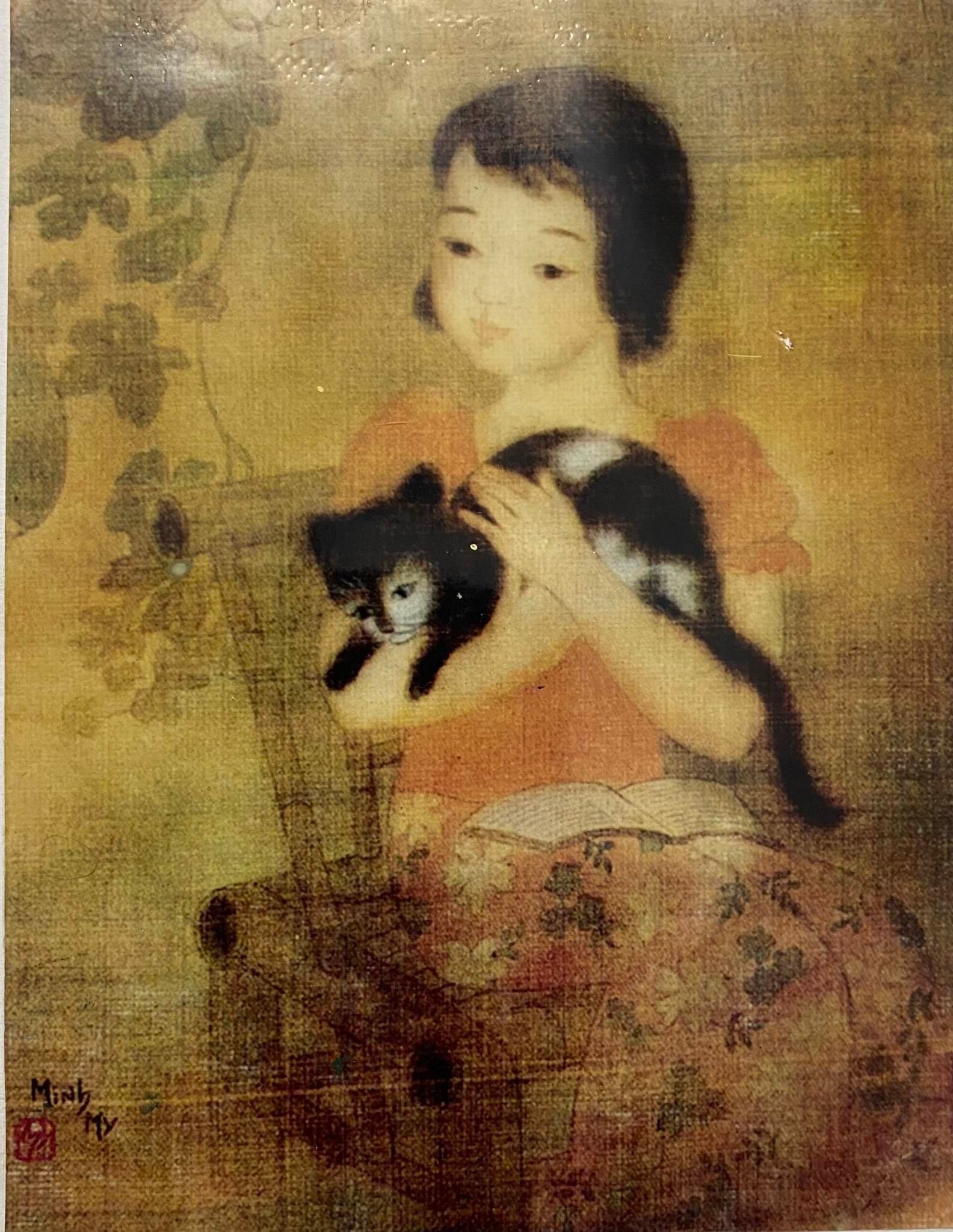 Em bé và chim bồ câu - Họa sĩ Nguyễn Minh Mỹ. |